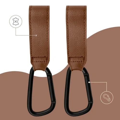 Универсални куки за количка от еко кожа - 2 бр в кафяв цвят