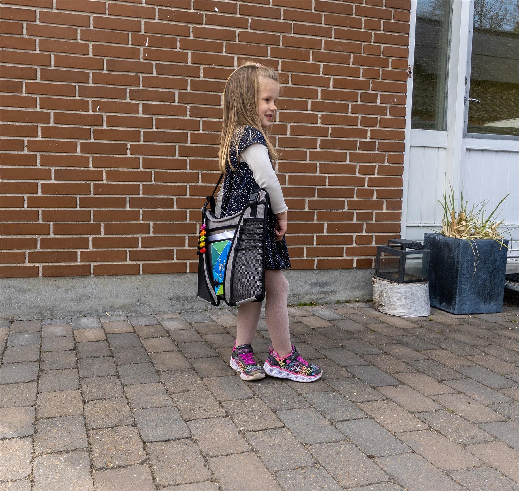 „Стигнахме ли вече?“ С дете на задната седалка, дори кратко пътуване може да се стори дълго и скучно. Но не и с TravelFun от BabyDan. Удобната подложка за занимания може да бъде изпълнена с часове забавление, което улеснява детето Bи да се забавлява на задната седалка. Удобните еластични джобове с различни размери могат да поберат всичко - от пастели и маркери до малки книжки и закуски. Голям джоб с цип от долната страна на таблата и голям пластмасов джоб точно пред детето също осигуряват достатъчно място за цял запас от хартия, рисунки и книги по време на пътуването. Ако поставите рисунка под големия пластмасов джоб точно пред детето, то може да оцветява директно върху пластмасата с маркери за бяла дъска и да избърше със суха кърпа - по този начин може да оцветява една и съща рисунка отново и отново. И накрая, разбира се, има джоб за таблет, разположен точно под правилeн ъгъл пред детето, но не по-далеч, отколкото детето може само да управлява таблета. Джобът е с размери 18 x 25 см. Високите ръбове гарантират, че маркерите, играчките, закуските и по-голямата част от трохите остават вътре, вместо да се озовават на дъното на колата, където нито детето, нито родителят могат да ги достигнат, докато колата е в движение. TravelFun от BabyDan е предназначен за задната седалка на колата, но може лесно да се използва и в количката, автобуса, влака, самолета, на ферибота или други по-дълги пътувания - дори у дома на дивана. Когато пътуването приключи, се сгъва лесно около себе си и се закопчава с еластична каишка, за да се носи като чанта през рамо от Bас или детето. Таблата лесно се закрепва около детето - или столчето за кола - с един регулируем колан и се поставя върху краката на детето. ЗАБЕЛЕЖКА: Ако обаче столчето за кола на Baшето дете има предпазна възглавница пред коремчето на детето, няма да е възможно да закрепите таблата здраво около него. В този случай препоръчваме да изчакате, докато детето Bи е достатъчно голямо, за да седи в столчето за кола без предпазната възглавница. - Практична подложка за занимания за деца в колата, количката, автобуса, влака, самолета, ферибота и др. - Оцветявайте една и съща рисунка отново и отново с маркери за бяла дъска и суха кърпа. - Няколко джоба с ластик за съхранение на маркери, книги, закуски и др. - Лесно се сгъва и носи като чанта през рамо - Включва джоб за таблет Размери: 40х35х20см