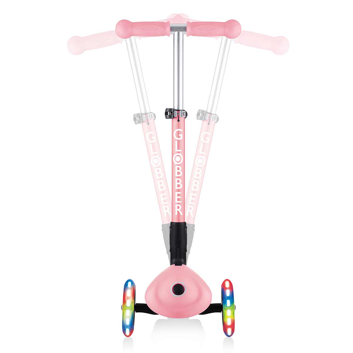 Основни характеристики на пастелно розовата сгъваема тротинетка Globber Fantasy със светещи колела