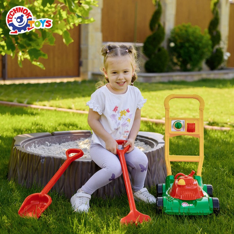 Детска играчка «Градинарски комплект ТехноК», арт.9574 не е просто играчка; това е вашият надежден спътник в истински градински приключения. С него вашето дете ще се почувства като господар на голяма градина или заден двор. Градинарският комплект има всичко необходимо за една забавна и вълнуваща игра: косачка Технок, лопата, гребла и лейка. Живият дизайн и реалистичният вид на косачката Технок със сигурност ще привлекат вниманието както на деца, така и на възрастни. Различните дръжки на косачката, симулиращи повишена мощност и скорост на косене, украсяват всяка игра. Под капака "двигател" има контейнер за съхранение на любими играчки и градински инструменти. А има и лейка за гориво. Греблата и лопатата ще помогнат за събирането и подреждането бързо и ефективно. Всяка част от комплекта е изработена от висококачествени материали, гарантиращи безопасност и надеждност по време на игра. Здравата конструкция осигурява дълготрайно забавление и още повече вълнение. Такава игра насърчава развитието на въображението и креативността и учи децата да се грижат за природата и околната среда. С Градинарския комплект ТехноК създайте впечатляващи и приятни моменти, които ще останат за цял живот.