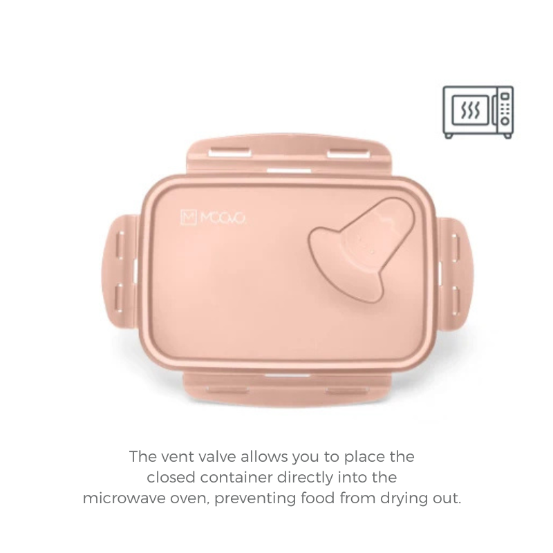 С вграден клапан, кутията за обяд може да се затопля директно в микровълновата фурна заедно с капака, предотвратявайки изсъхването на храната и запазвайки я свежа.