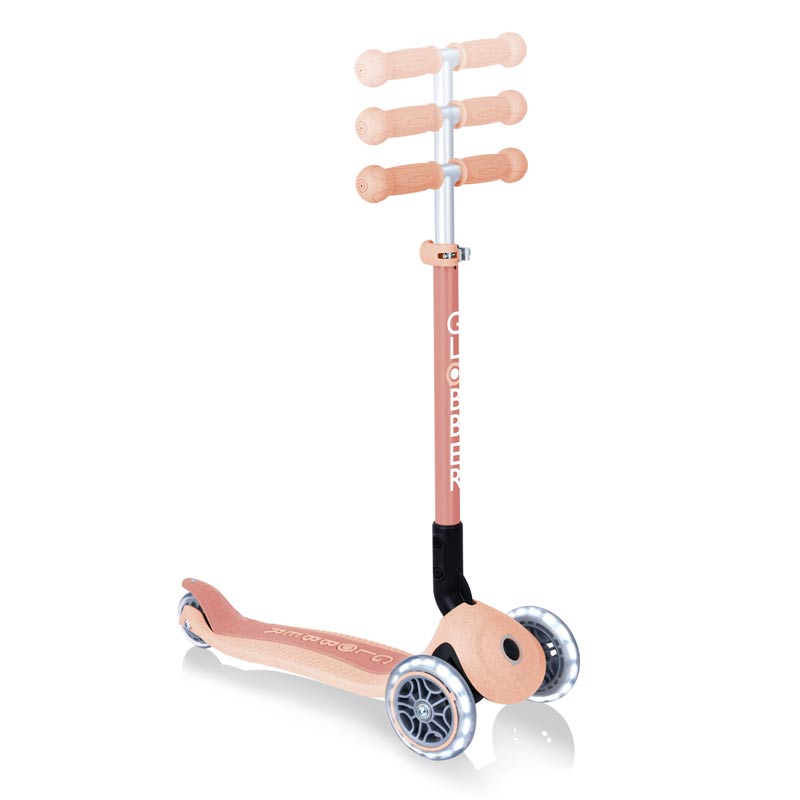 Един по-зелен свят на колела благодарение на новите еко тротинетки на Globber! Скутерите с три колела от серията PRIMO FOLDABLE LIGHTS ECO са предназначени за деца над 3 г. Те са изработени от 60% пластмаса по Глобалния стандарт за рециклиране и биоразградима пшенична слама и водят до екологична еволюция.