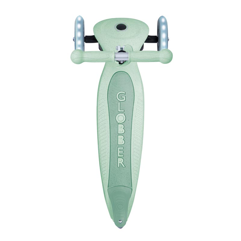 Насладете се на семейни забавления и щадящи планетата пътувания с този еко скутер с 3 колела на Globber в новия пистачио цвят!