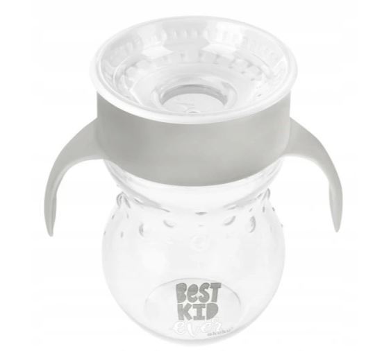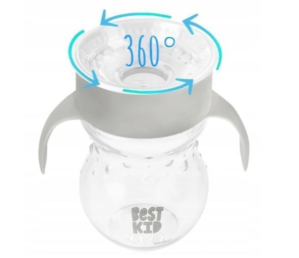 Чаша без разливане е предназначена за самостоятелно пиене. Тя е оборудвана със запечатващ вентил, който предотвратява изливането на течност. Устният накрайник позволява да се пие от всяка част на ръба на чашата. Удобни и широки дръжки и ергономична форма улесняват държането на чашата в малките ръце. Капачката предпазва от замърсяване. Лесно и бързо почистване. Може да се мие в съдомиялна машина. Без BPA.