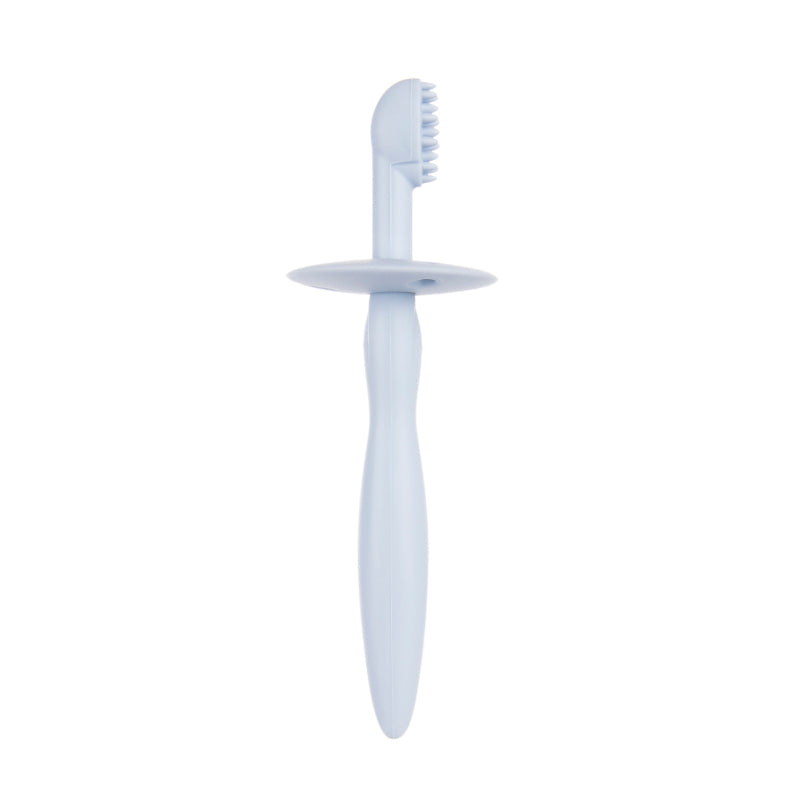 Перфектна за започване на приключението с четка за най-малките деца. Изработена от мек и безопасен силикон, тя не дразни деликатните венци на бебетата и гарантира цялостно почистване на първите зъби. Специален щит предотвратява вкарването на четката твърде дълбоко в устата на детето. За деца, които все още нямат зъби, четката може да се използва като чесалка, за масаж и ежедневна хигиена на венците. Охлаждането в хладилник преди употреба ще донесе облекчение по време на периода на никнене на зъби.