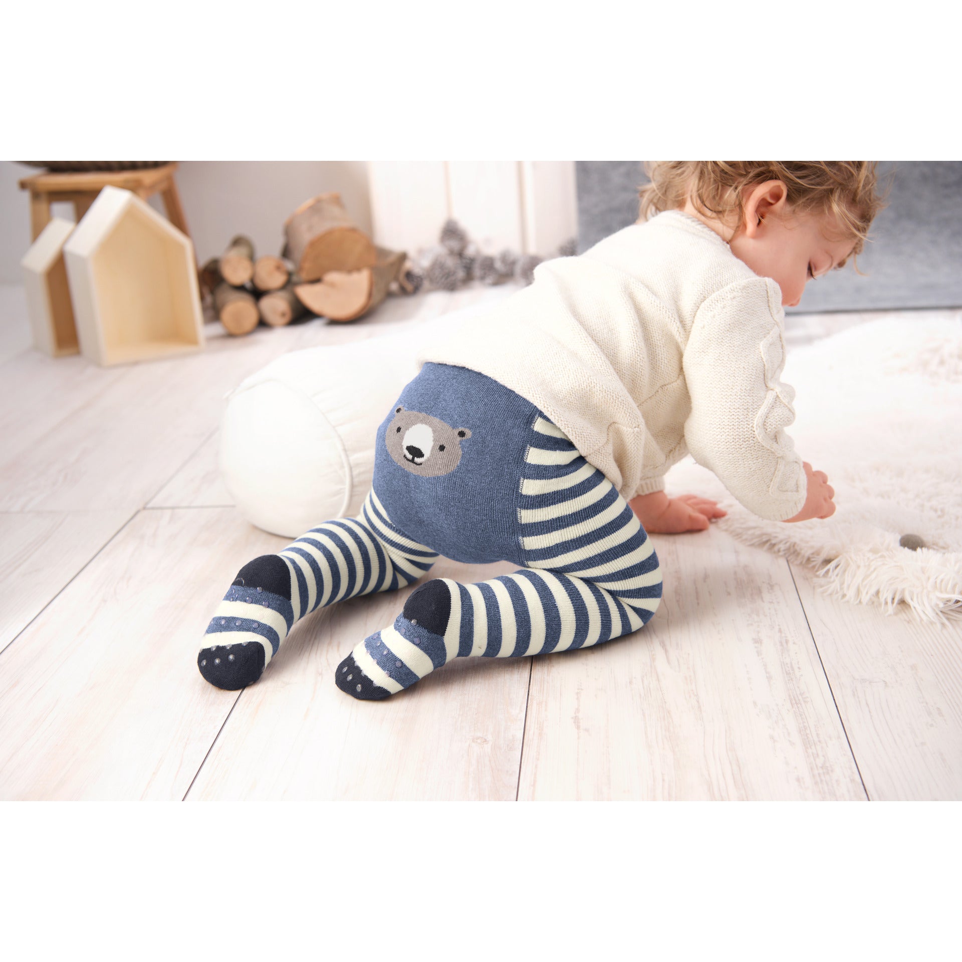 Чорапогащник за пълзене Sterntaler® е идеалният спътник при пълзене, лазене и за първите стъпки на Вашето дете. Термо чорапогащник - високото съдържание на памук предлага приятна топлина и в същото време не запарва. ABS силиконовите бутончета на стъпалото, ходилото и на коленете осигуряват добро стъпване дори върху хлъзгави подове. Чорапогащниците на Sterntaler осигуряват комфорт и оптимална свобода на движение. Парчето отдолу и подсилената плетка на пръстите и петите осигуряват по-голяма устойчивост. Добавена е материя с еластан и полиамид, която обгръща плътно стъпалото и ги прави разтегливи и устойчиви на многократно пране.