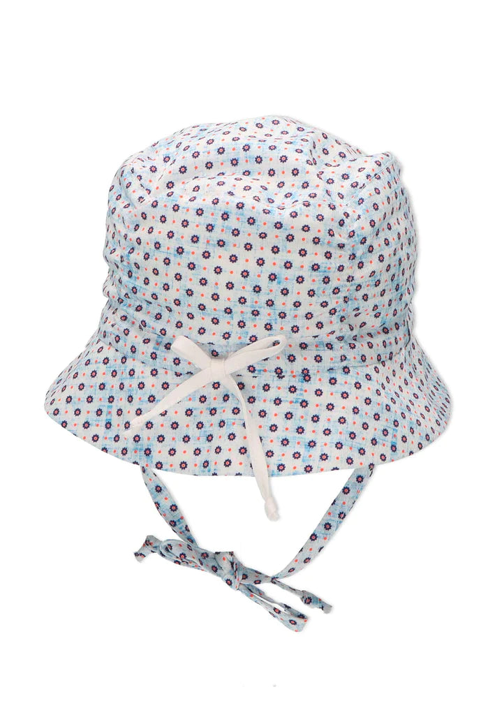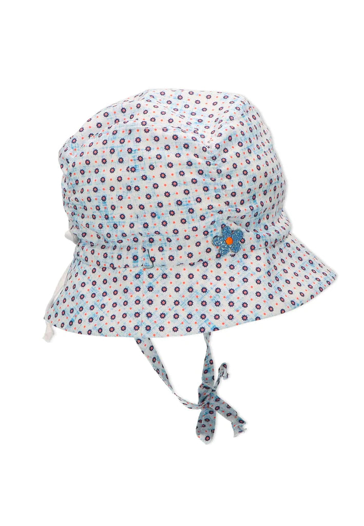 Лятна детска шапка за момичета в размери от 39см. до 51см. Слънцезащитната шапка се предлага в бял цвят на флорални мотиви. Моделът на детската шапка дава възможност за допълнително регулиране в зависимост от размера на главата на детето с помощта на връзки на тила. Детската лятна шапка е изработена от 100% памук с UV 50+ защита. Висококачественият материал предлага цялостна защита за чувствителния детски скалп, а периферията пази допълнително детското личице от слънчево изгаряне. Защитете Вашето дете от преките слънчеви лъчи ???? като се доверите на Sterntaler и детските шапки с висока защита срещу ултравиолетовите лъчи!