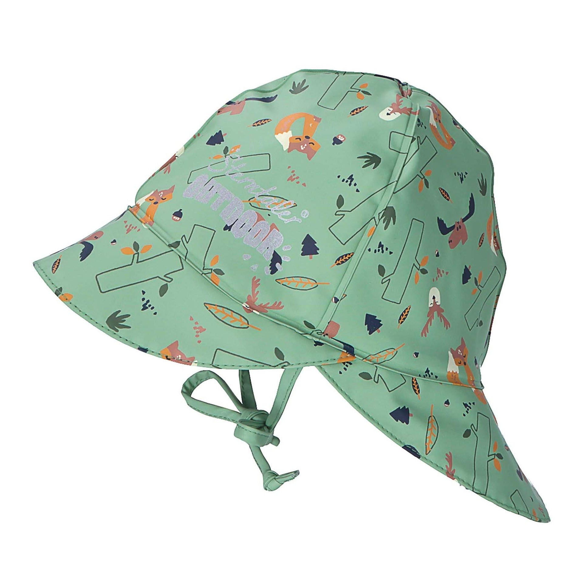 Навън, през дъждовните сезони от годината трябва главата, лицето и шията на Вашето дете да са добре покрити и защитени с шапка, която да защитава от слаб или силен дъжд и вятър. Детската шапка за дъжд на Sterntaler е с подлепени шевове, водоустойчива и със страхотна щампа с горски животни. Подплатeна е с меко, памучно трико е много удобна за носене, а връзките и осигуряват допълнителна стабилност. Светлоотразителният детайл с логото на Sterntaler отпред осигурява добра видимост. Може да се комбинара с дрехи за дъжд от същата серия - Горски животни и дори и най-мрачните дъждовни дни стават цветни и приказни.