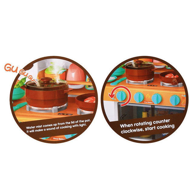Детска кухня за вълнуващи ролеви игри. С тях детето развива въображението си и своята креативност, като същевременно се забавлява. С тази кухня детето ще се почувства като истински готвач като готви ястия, които харесва! Комплектът включва 43 аксесоара, сред които ястия, продукти и прибори, с които малчуганът ще твори в своята кухня. Характеристики: Пара - за реалистично готвене! Мивката е с течаща вода! Натиснете крана, за да измиете всички зеленчуци. Музика и светлини за още повече забавление по време на игра. Табло с бутон за включване и изключване, бутон за музика, бутон за пара, както и бутон за регулиране на нивото на звука. Включена дъска, върху която малчугана да записва своите рецепти или да рисува своите кулинарни творения. Фурната се отваря, за да бъде поставено вътре "печивото". Снабдена с шкафче с двойна врата за съхранение на аксесоари. В страничната част разполага с удобни рафтчета за съхранение. Игрите с играчката развиват въображението, фината моторика и креативността на децата. Размери на кухнята: В 72 х Д 51.5 х Ш 23.5 см Размери на опаковката: 59.5 х 16 х 44 см Необходими батерии: 6 бр. батерии тип "АА" (не са включени). Подходящо за деца над 3 години. Технически данни: Общо обемно тегло с опаковка в кг: 2.500000 Специални цени: No Цвят: Жълт Дължина: 51.5 cm Изработено от: Метал, Пластмаса Дълбочина: 23 cm Височина: 72 cm Възраст: Над 3 години, Над 4 години, Над 5 години, Над 6 години Подходящо за: За всички деца