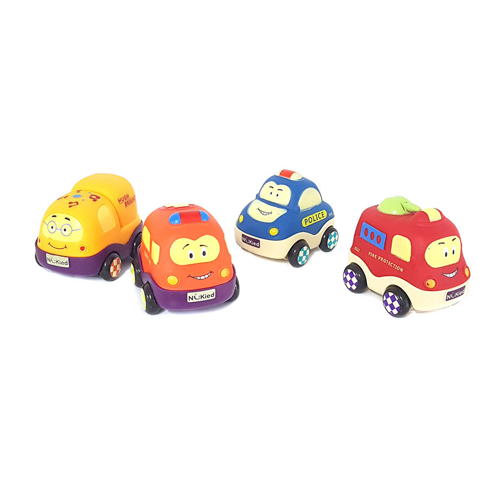 Мини анимационна кола от мек материал. Страхотна занимавка за всяко дете. Количките са асортимент, синя полицейска количка, оранжева линейка, червена пожарна и жълто такси.