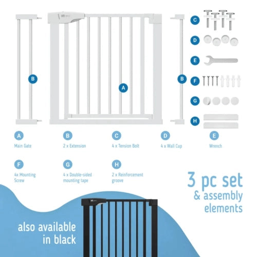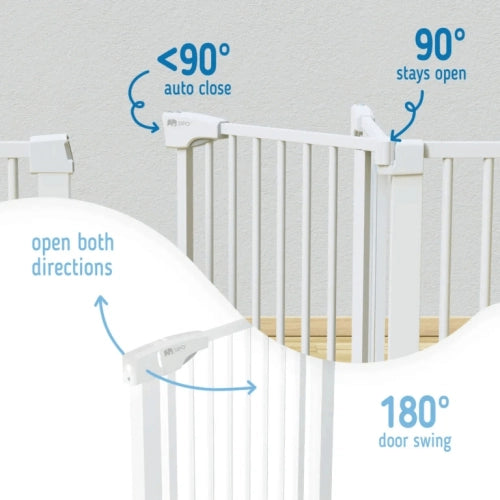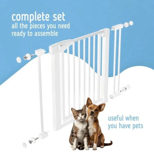 Тази защитна бариера за деца и домашни любимци е също толкова практична и за собствениците на животни. Помага за поддържане на по-добра организация и чистота, като държи кучетата или котките извън определени помещения. Благодарение на универсалния си дизайн, вратичката пасва на различни пространства: врати, горна или долна част на стълбища и тесни коридори – като се адаптира лесно към вашия дом.
