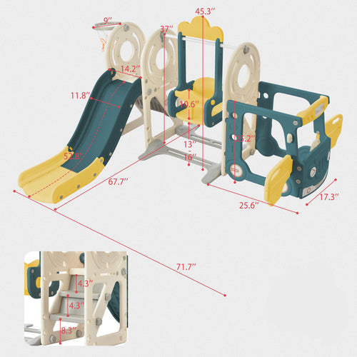 Детска площадка с пързалка и люлка. Децата ви могат да играят цял ден във вашия дом. В комплекта се включват пързалка, люлка, камионче за игра, баскетболен кош с топки. С детски парти център BUS играта е гарантирана и пълна.Пластмасата е полирана много гладко, така че не е нужно да се притеснявате, че децата ви ще се наранят.Характеристики: Размери: 171*187*115; Размер на опаковката: 101*34*65; Максимално тегло: 50 кгСертифициран материал - Качеството винаги е наш основен приоритет, когато правим играчки за деца. Изработена от сертифициран висококачествен HDPE материал, тази детска пързалка е напълно нетоксична. Детски парти център Bus 5 в 1 - Тази свободностоящ игрален център включва 5 вълнуващи секции за игра. На първо място има здрава и устойчива пързалка. След това реалистичен модел на автобус и забавен баскетболен кош. Много сладка малка люлка е фиксирана между автобуса и пързалката. Тази изненадваща комбинация може да донесе безкрайно забавление на децата.Дизайн - Създадохме реалистична парти център автобус, което го прави идеален подарък, за да изненадате вашите малки деца. Частта от модела на автобуса включва интересен волан с бутони, две светлини и две огледала за обратно виждане, които осигуряват някои спомагателни образователни функции, докато взаимодействат пълноценно с децата.В комплекта е включен и баскетболен кош за да направи играта на децата Ви още по-забавна.