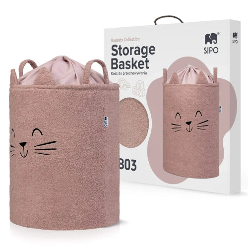 С капацитет от 43 литра кошът е подходящ за използване в детска стая, хол, спалня или баня, като осигурява удобно съхранение на играчки, текстил и аксесоари, без да заема излишно пространство. Външният слой е изработен от мек, пухкав букле плат, който естествено приканва към допир и взаимодействие. Приветливият дизайн с животински мотив – очарователната котка – помага за изграждане на емоционална връзка с продукта и превръща подреждането в забавление, а не в задължение.