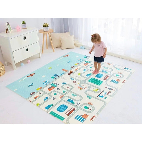 Двулижево сгъваемо килимче за пълзене и игра от пяна. Килимчето е нетоксичен и напълно безопасен, което го прави подходящ за употреба от деца, дори и в най-ранна възраст.Килимчето изолира от студеният под. Меко е и комфортно, но в същото време достатъчно плътно и устойчиво но натиск. Чудесно буферира и обира удара при евентуално падане но детето. Осигурява защита на костното развитие на бебетата, като предпазва коленете при пълзене.Релефната повърхност предпазва от подхлъзване и в същото време стимулира фината моторика на децата. Цветните принтове стимулират зрението и въображението.Килимчето е водоустойчиво и се почиства лесно и бързо.Килимчето е подходящо за деца от всякаквa възраст за лазене, прохождане и игри.Предимства: Килимчето е водоустойчиво Двулицево Термоизолирощо Меко и устойчиво Нетоксично Портативно и компактно Чанта за съхранение Размер 180 х 200 х 1 смМоже до ползвате килимчето вкъщи, на плажа, в градината или в гората. Леко и компактно, което го прови лесно за транспортиране навсякъде с вас.