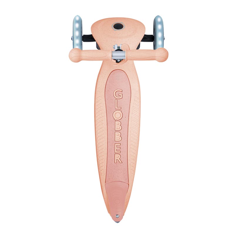 Насладете се на семейни забавления и щадящи планетата пътувания с тази сгъваема еко тротинетка с 3 колела на Globber в новия прасковен цвят!