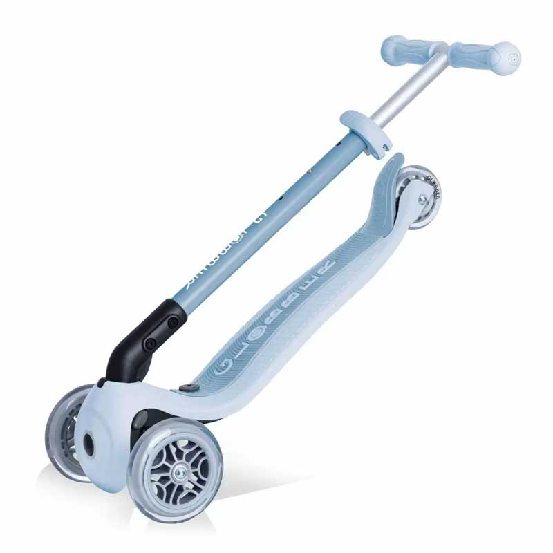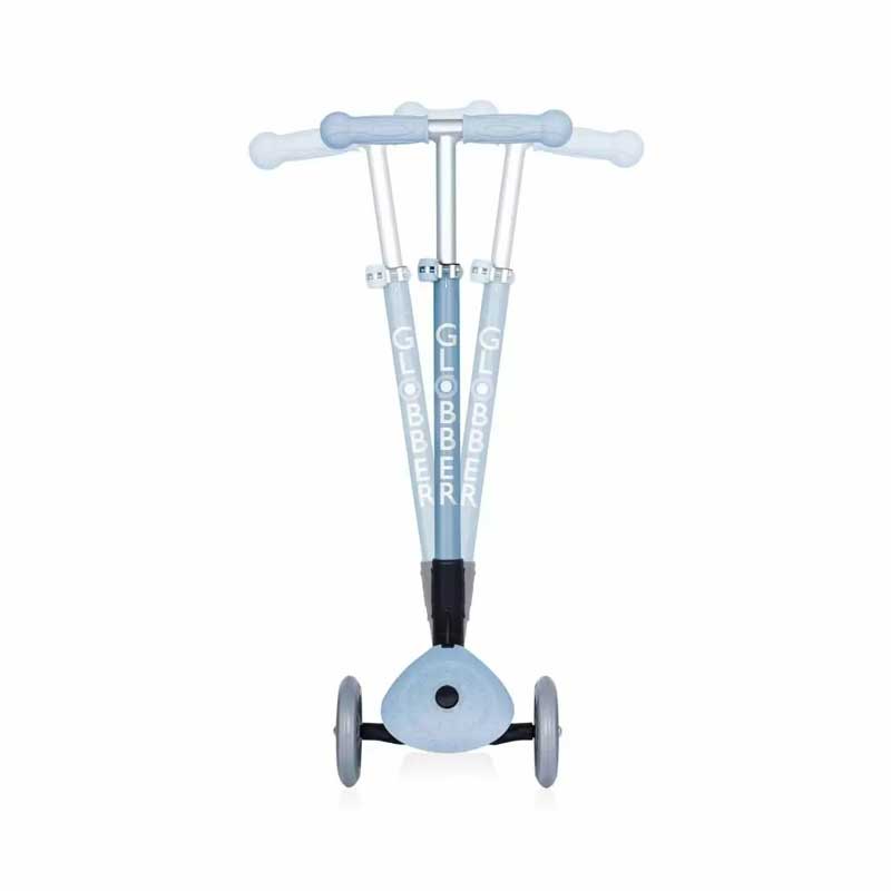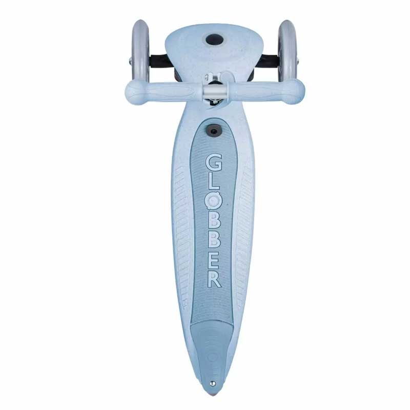 GO•UP FOLDABLE PLUS ECOLOGIC има патентована от Globber система за заключване на управлението, която блокира предните колела на скутера, позволявайки на децата да се движат само напред и назад. Това им помага да придобият увереността да карат своята еко триколка за деца, докато упражняват и умения за балансиране.