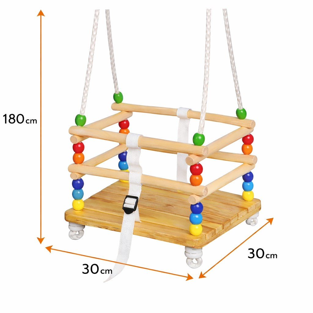 Детска Дървена Люлка GINGER HOME с Колан и Бордове – до 70 кг, 30×30 см
