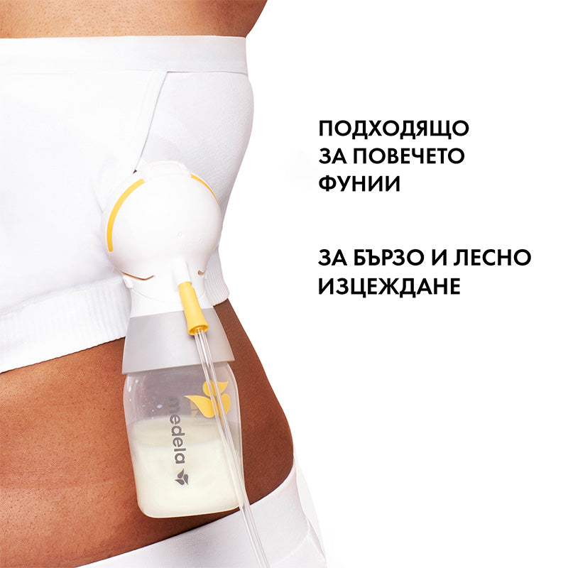 С бюстие Medela Hands-free™ можете да изцеждате кърма с всички двойни електрически помпи за кърма Medela .
