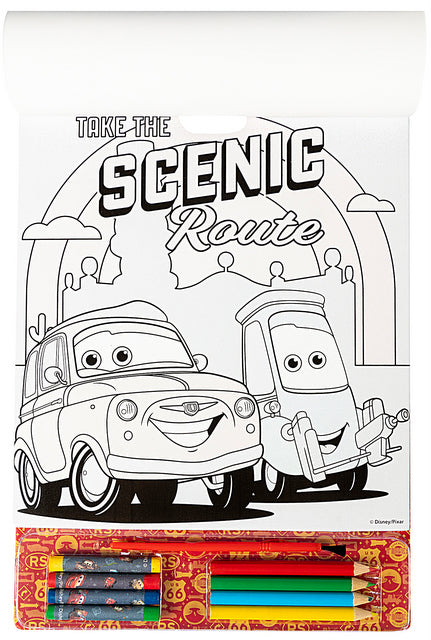 Комплект За Вълшебно Рисуване Колите С 20 Листа За Оцветяване, 4 Листа За Рисуване С Вода, 4 Пастела, 4 Молива За Оцветяване,Стикери И Четка А4