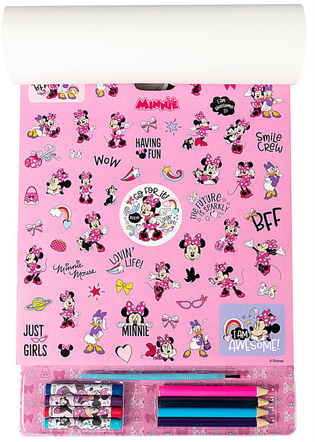 Комплект За Вълшебно Рисуване Мини Маус С 20 Листа За Оцветяване, 4 Листа За Рисуване С Вода, 4 Пастела, 4 Молива За Оцветяване,Стикери И Четка А4