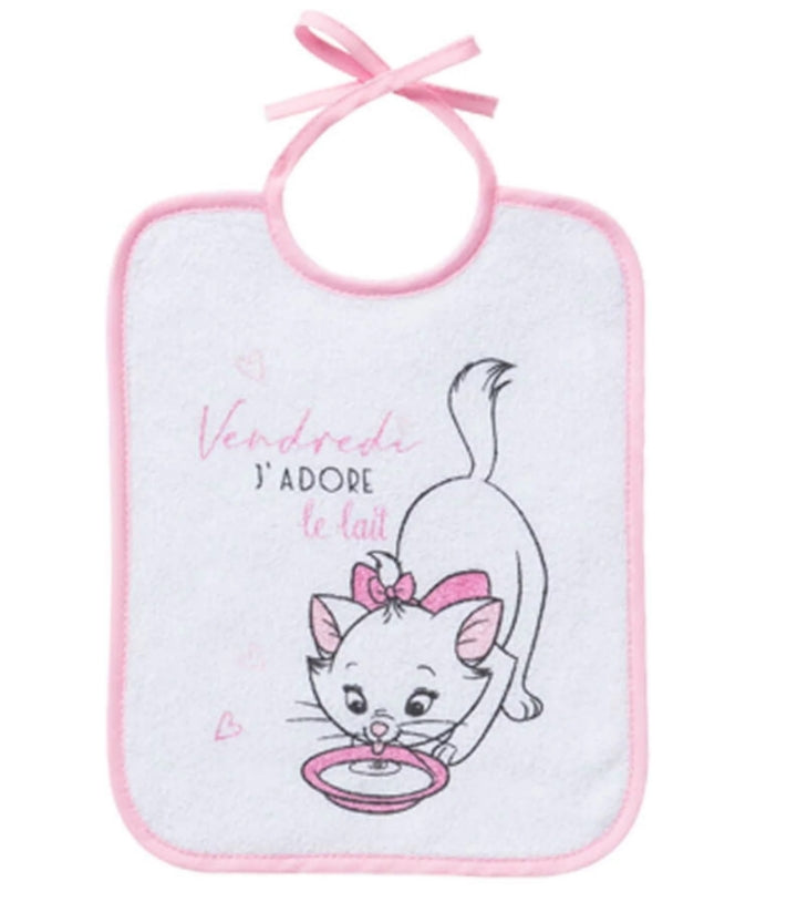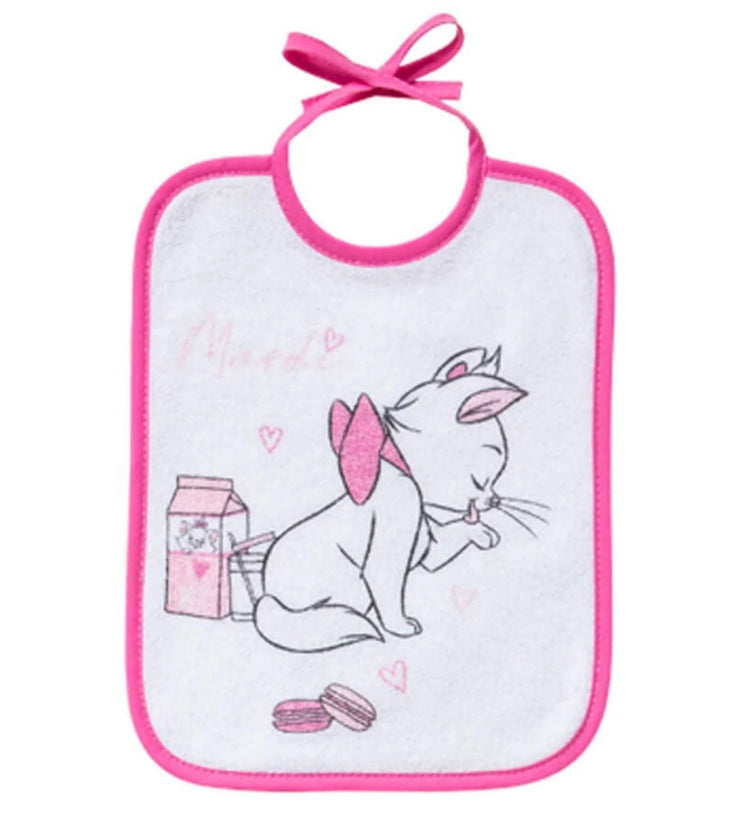 Комплектът включва 7 ежедневни лигавника в розово и бяло, декорирани с деликатни щампи на Мари от Disney. Изработени от мек хавлиен плат, лигавниците осигуряват отлична попиваемост, като предпазват бебешките дрешки от замърсяване по време на хранене.