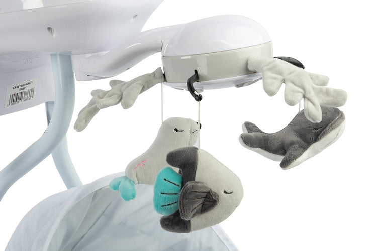 Люлката разполага с електрическа въртележка със светлини и подвижна табла за лесна грижа за детето.