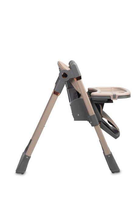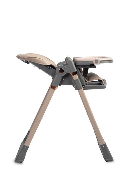Седалката е изработена от устойчив на петна материал, който лесно се почиства. Калъфът може лесно да се сваля и пере. Допълнителната подвижна подложка за таблата позволява бързо и удобно почистване след хранене.