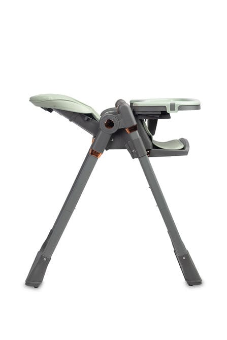 Седалката е изработена от устойчив на петна материал, който лесно се почиства. Калъфът може лесно да се сваля и пере. Допълнителната подвижна подложка за таблата позволява бързо и удобно почистване след хранене.