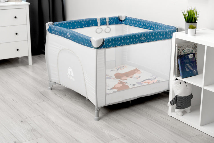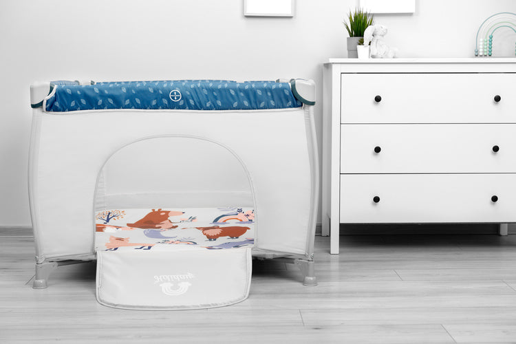 Комплектът включва и разтегателен матрак. Създаден е, за да осигури безопасност и комфорт по време на игра.