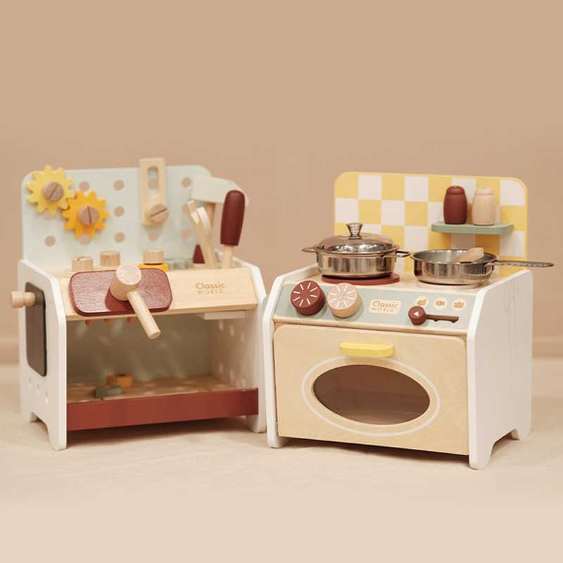 Малка Детска Преносима Кухня От Дърво На Classic World - Кухни И Готварски Пособия - Classic World - BebeMama