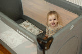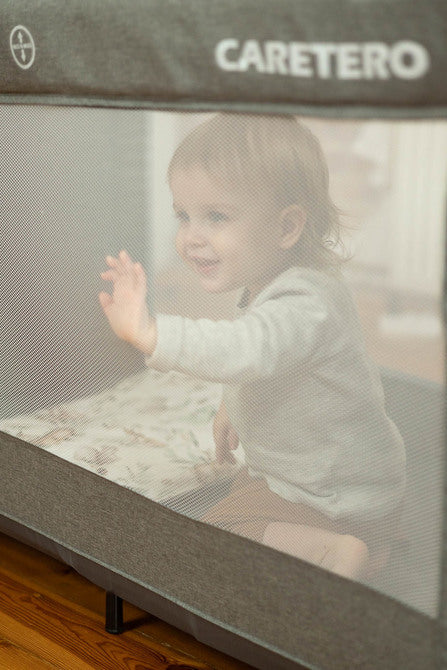 Esti 3 в 1 не е само кошара до легло, но също така се използва отлично като пътуваща кошара. Регулируемата височина на пода гарантира комфорт за родителите и оптимална циркулация на въздуха, адаптирана към различните сезони. Благодарение на заключващите се колела, кошарата може лесно да бъде преместена, а ципираните врати позволяват на по-големите деца да я използват свободно.