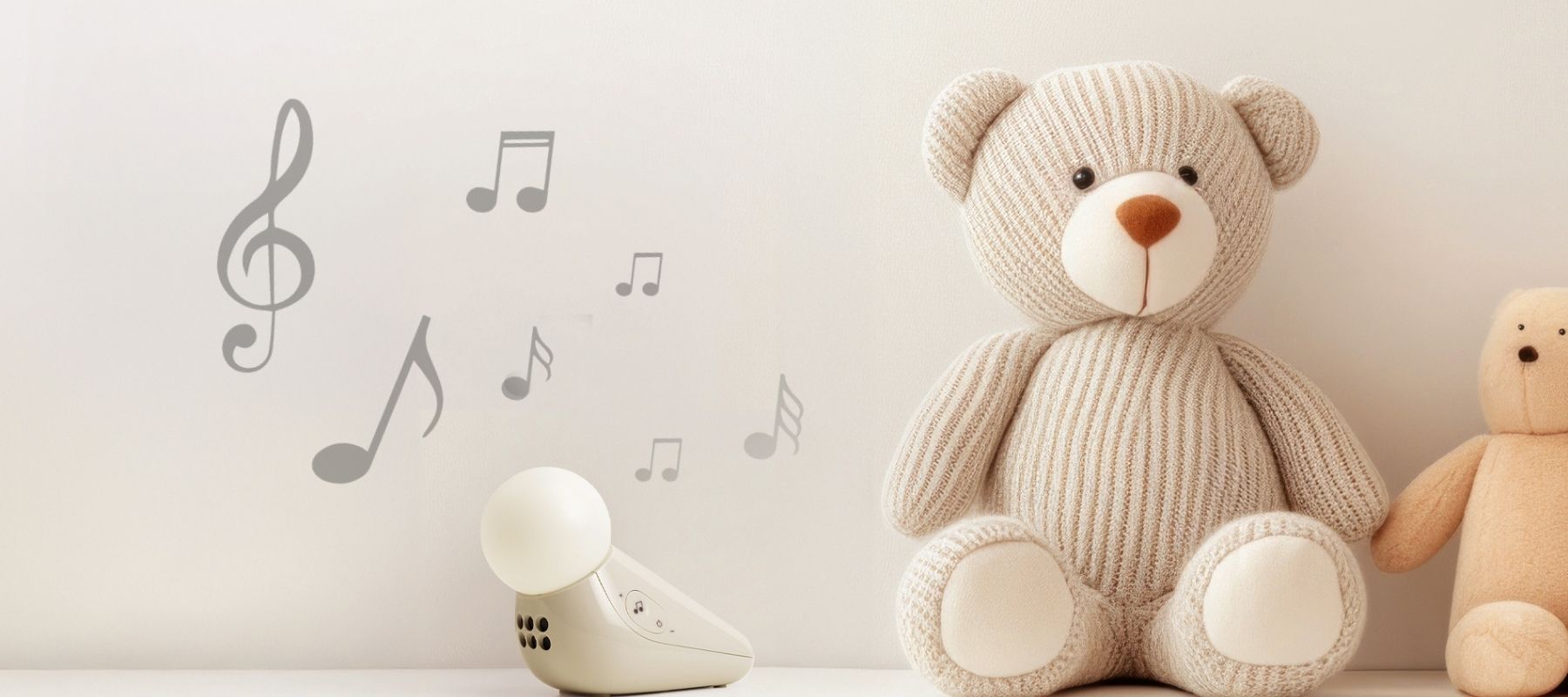 10 успокояващи звука (3 приспивни песнички, 3 звука от природата, бял шум, кафяв шум, вентилатор и звук на утробата)