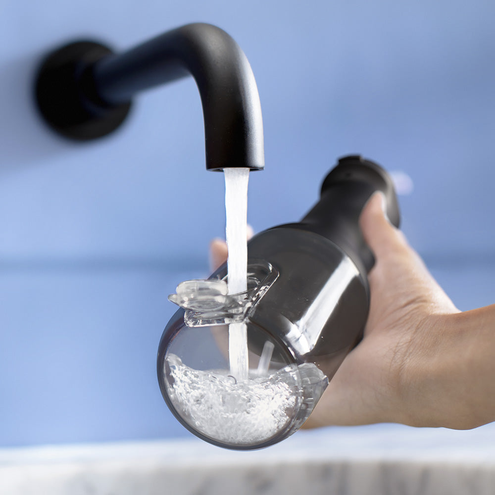Резервоар с вмест 250 мл позволява препоръчителното почистване от 60 секунди. Просто завъртете и отворете или използвайте страничния отвор за пълнене за лесно презареждане.