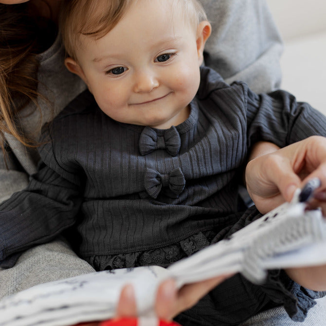 Играчката е изработена от меки, приятни на допир материали в контрастни цветове, които ще насърчат малкото ви дете да играе с включените сензорни висулки.