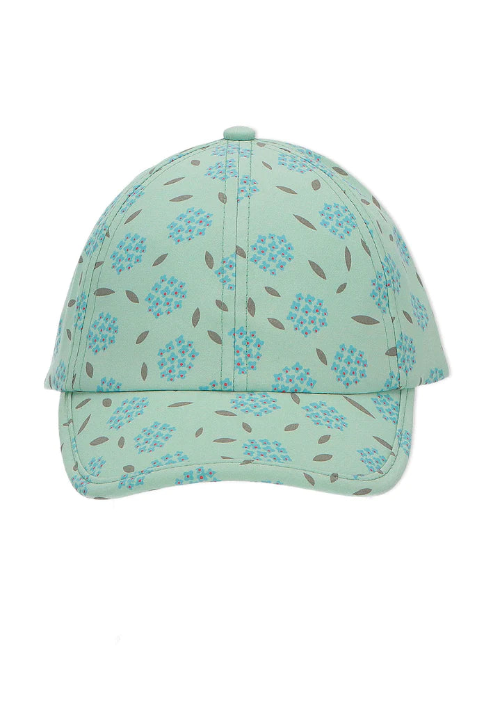 Лятна детска шапка, тип бейзболна за момичета в размери от 51см. до 55см. Бейзболната шапка се предлага в ментов цвят  с щампа на цветя.  Моделът на детската шапка дава възможност за допълнително регулиране в зависимост от размера на главата на детето с помощта на елегантана катарама. Детската лятна шапка е изработена от 100% памучна(органична) материя и подплата от полиестер. Висококачественият материал предлага цялостна защита за чувствителния детски скалп, а твърдата козирка пази допълнително детското лице от слънчево изгаряне. Защитете Вашето дете от преките слънчеви лъчи ????като се доверите на Sterntaler .