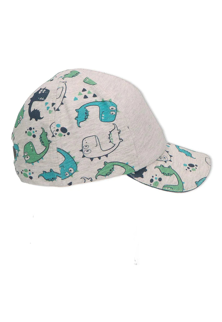 Лятна детска шапка, тип бейзболна за момчета в размери от 51см. до 53см. Бейзболната шапка се предлага  в  сив цвят с принт на динозаври.  Моделът на детската шапка дава възможност за допълнително регулиране в зависимост от размера на главата на детето с помощта на ластик. Детската лятна шапка е изработена от памучна материя с UV 50+ защита. Висококачественият материал предлага цялостна защита за чувствителния детски скалп, а твърдата козирка пази допълнително детското лице от слънчево изгаряне. Защитете Вашето дете от преките слънчеви лъчи ???? като се доверите на Sterntaler и детските шапки с висока защита срещу ултравиолетовите лъчи!