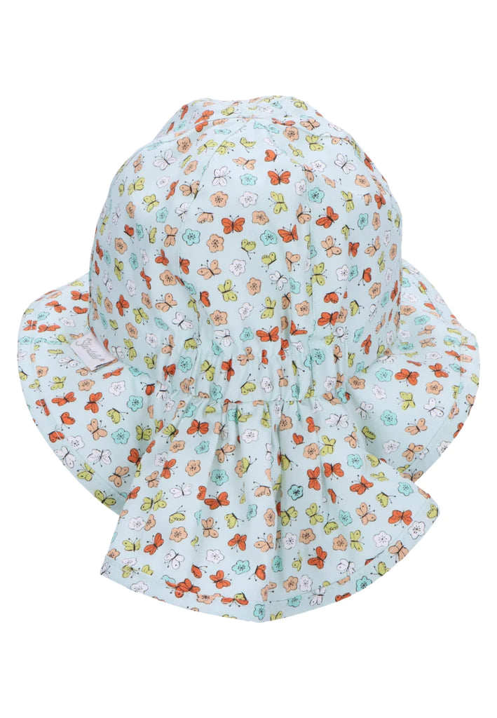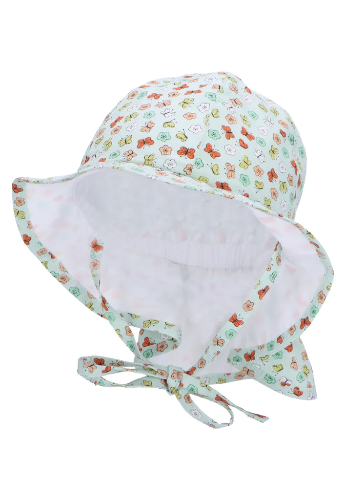 Лятна детска шапка за момичета в размери от 47см. до 51см. Слънцезащитната шапка се предлага  в бледо зелен цвят с принт на цветя и пеперуди . Моделът на детската шапка дава възможност за допълнително регулиране в зависимост от размера на главата на детето с помощта на ластик. Детската лятна шапка е изработена от 100% памук с UV 50+ защита. Висококачественият материал предлага цялостна защита за чувствителния детски скалп, а периферията пази допълнително детското личице от слънчево изгаряне. Защитете Вашето дете от преките слънчеви лъчи ???? като се доверите на Sterntaler и детските шапки с висока защита срещу ултравиолетовите лъчи!