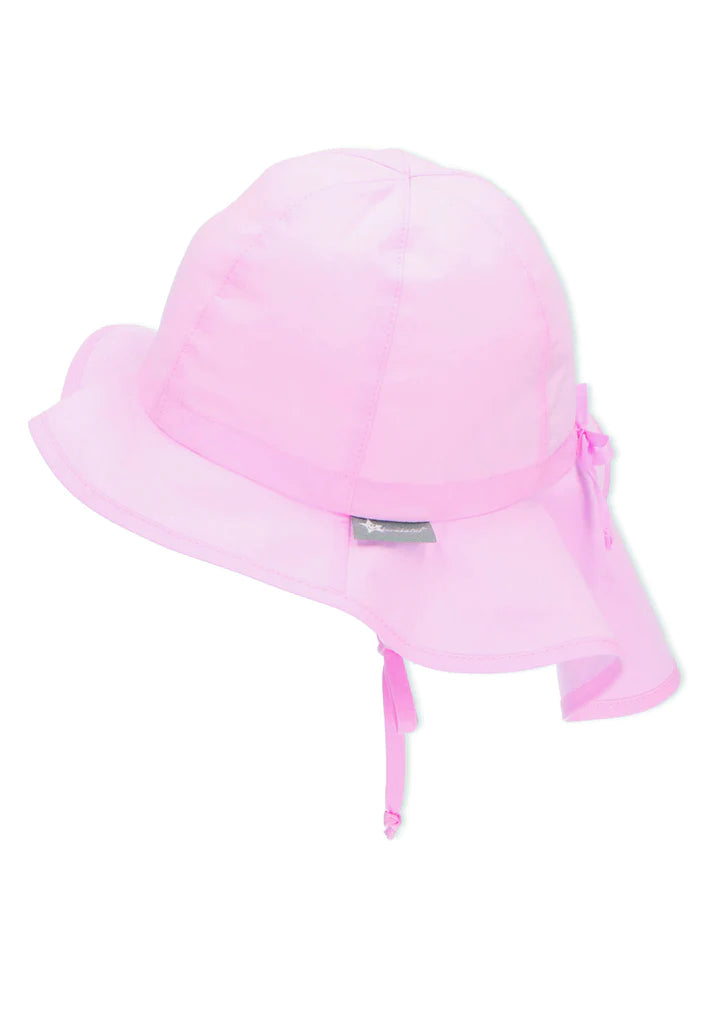 Лятна детска шапка, с  платка на тила за момичета в размери от 41см. до 53см. Слънцезащитната шапка се предлага  в  розов цвят.  Моделът на детската шапка дава възможност за допълнително регулиране в зависимост от размера на главата на детето с помощта на пришита връзка . Детската лятна шапка е изработена от 100% памук с UV 50+ защита. Висококачественият материал предлага цялостна защита за чувствителния детски скалп, а периферията пази допълнително детското личице от слънчево изгаряне. Защитете Вашето дете от преките слънчеви лъчи ???? като се доверите на Sterntaler и детските шапки с висока защита срещу ултравиолетовите лъчи!