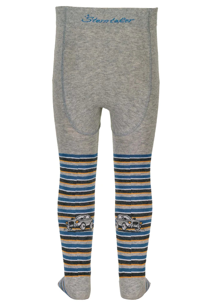 Страхотният детски чорапогащник райе с мотив на коли е невероятен спътник в ежедневието на Вашето дете. Високото съдържание на памук предлага приятна топлина и в същото време е дишащ. Комфортната ластична лента на кръста осигурява добро задържане, без да създава точки на натиск върху чувствителната детска кожа. Оформящите шевове в областта на петата, пръстите и чатала са много плоски и не ограничават детето Ви, когато тича, играе или се забавлява. Чорапогащникът може да се носи както самостоятелно, така и в комбинация с панталон – затова е подходящ за всеки сезон и не бива да липсва в детския гардероб.