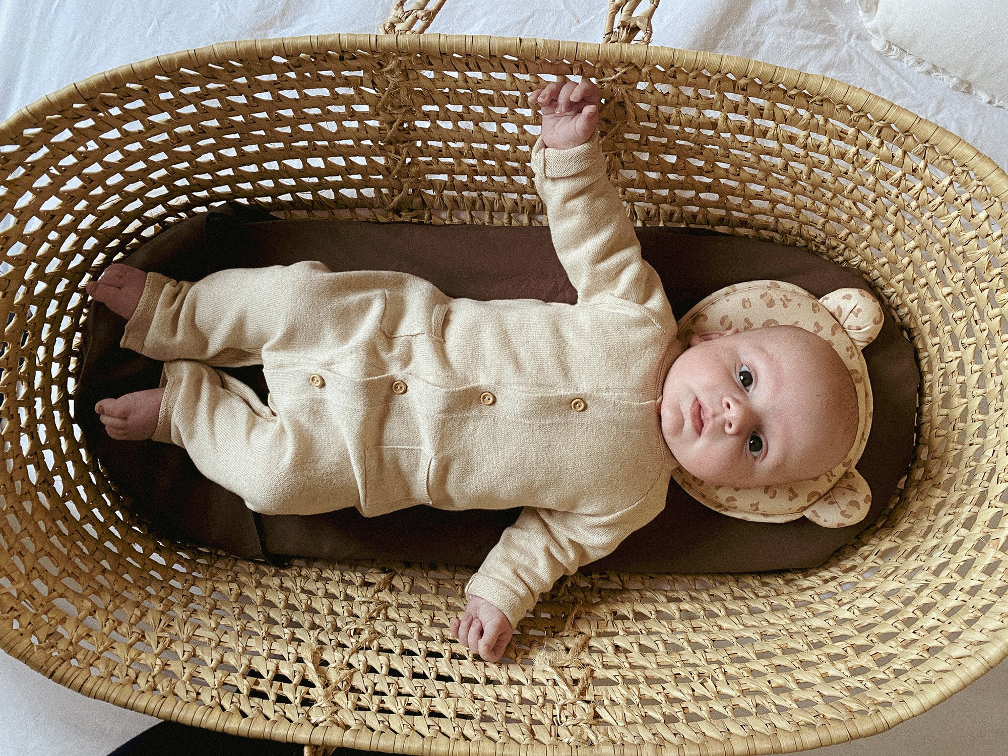 Изработена е от специално дишащи антиалергични 3D материали, между които въздухът циркулира, така че главата на бебето не се поти.