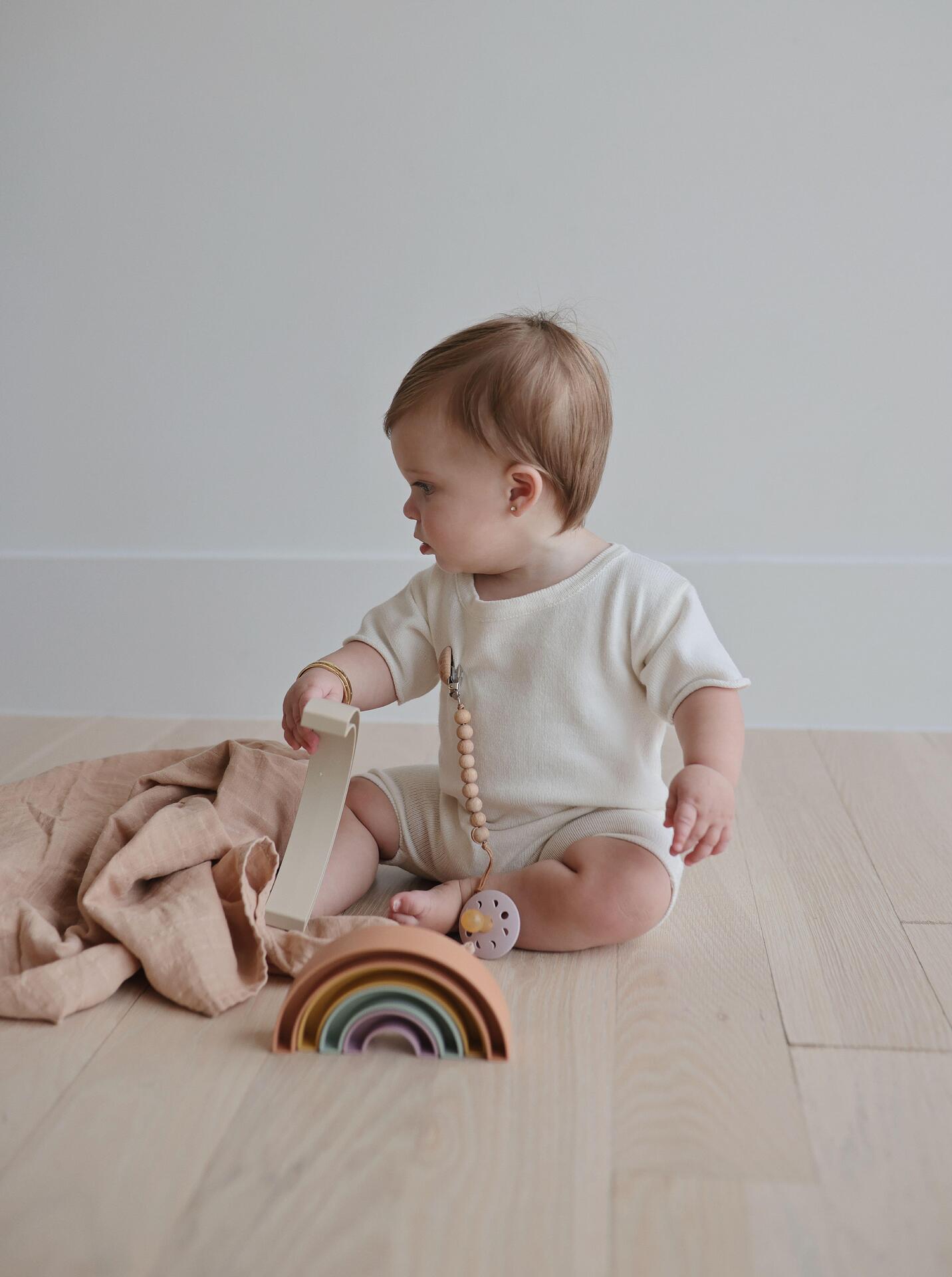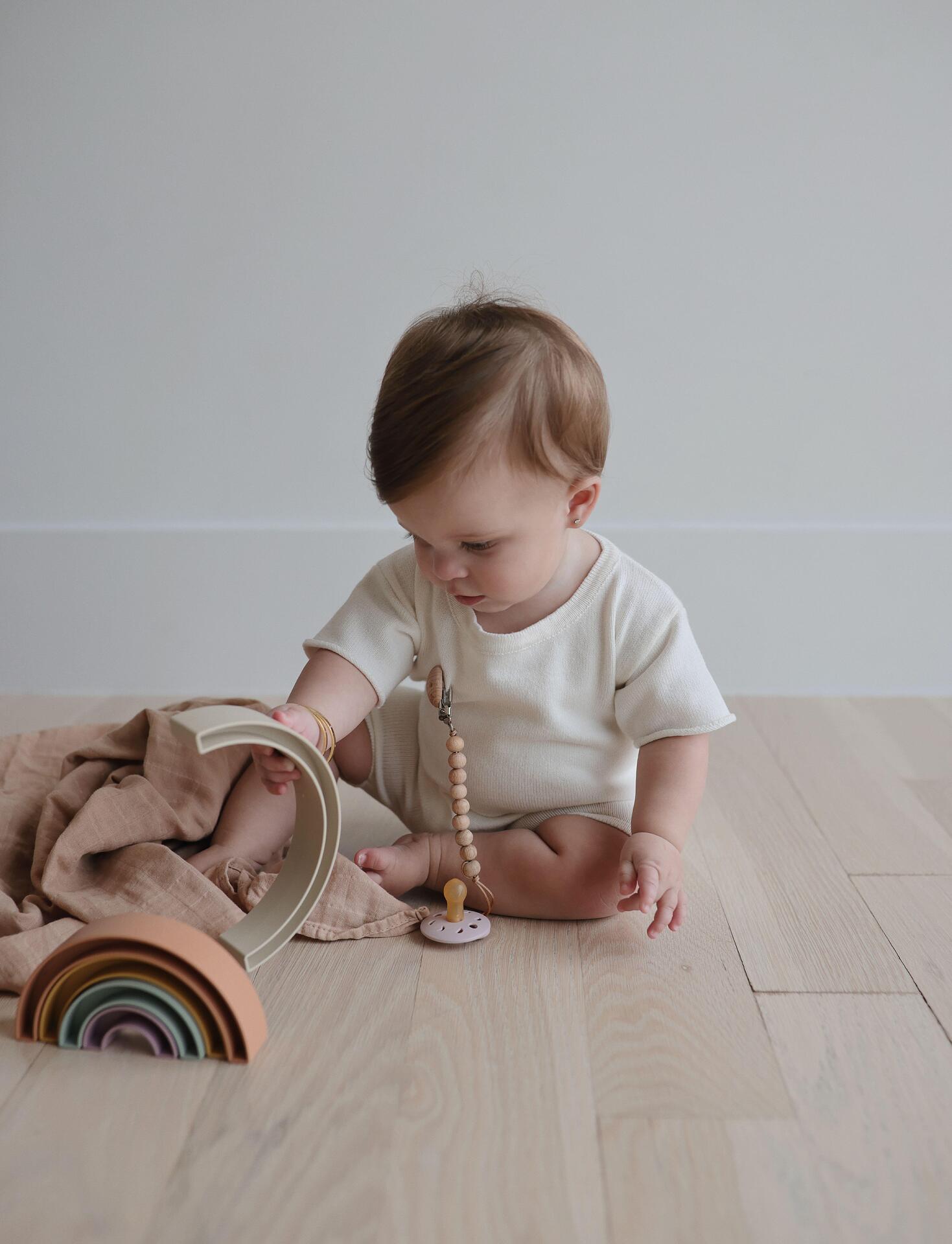 От датската колекция Hygge на Mushie идва тази закачлива играчка дъга за редене, вдъхновена от небесната пътека на дъгата в Орхус, Дания. Мъничетата ще сортират, подреждат и играят с този красив комплект, докато учат с нежни пастелни цветове и развиват фините си двигателни умения.  Характеристики: Размери: 18.4 х 11.4 х 3 см. Изработен от пластмаса без BPA, PVC и фталати Препоръчва се за деца на възраст от 1 до 3 г. Развиват когнитивните разсъждения, фините двигателни умения и лингвистичното развитие Включва 5 части за редене Дъга Препоръчват се играчки за подреждане за ангажиране на когнитивните разсъждения, фините двигателни умения и езиковото развитие. Грижа: За почистване измийте с топла сапунена вода и оставете да изсъхне на въздух.