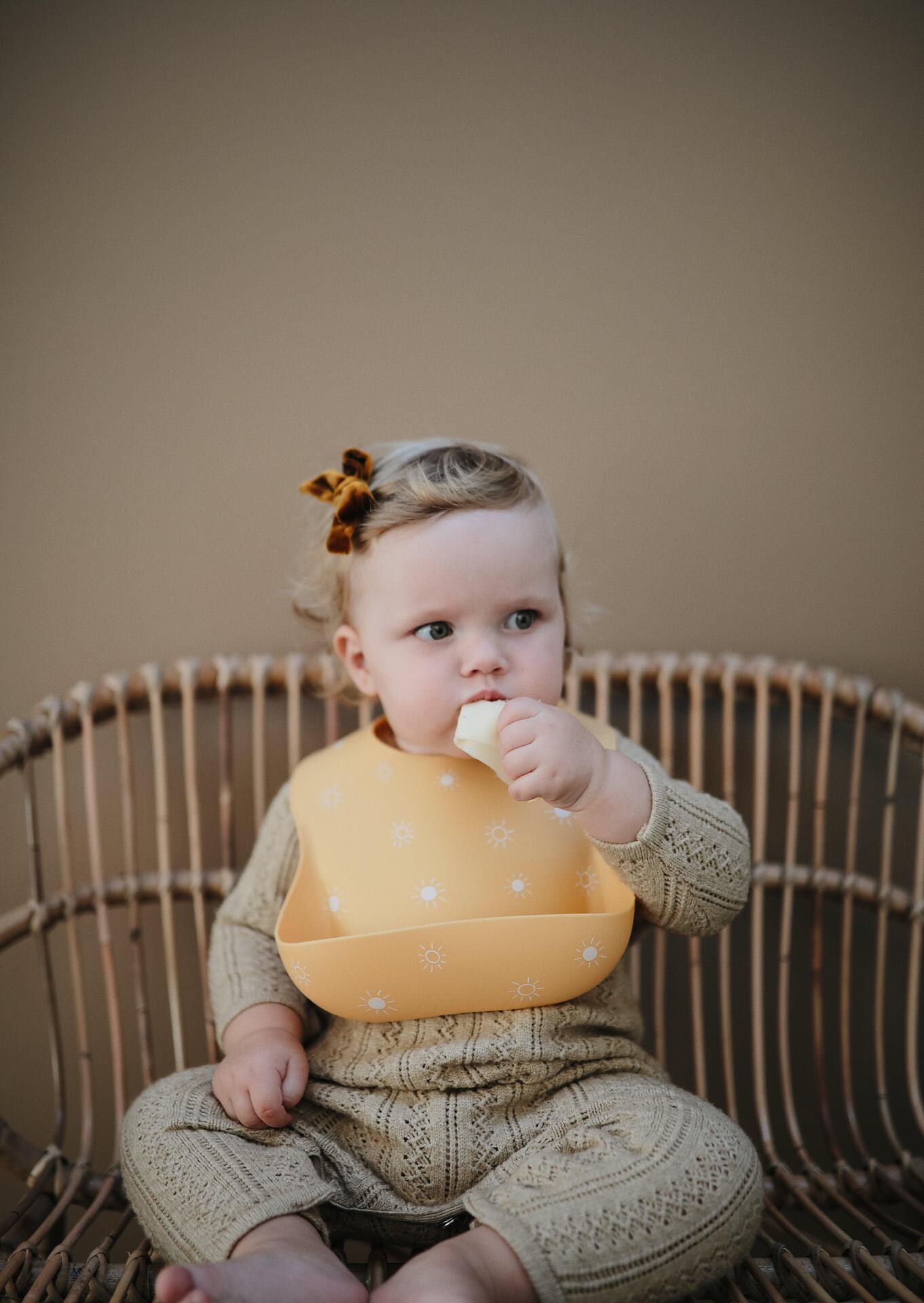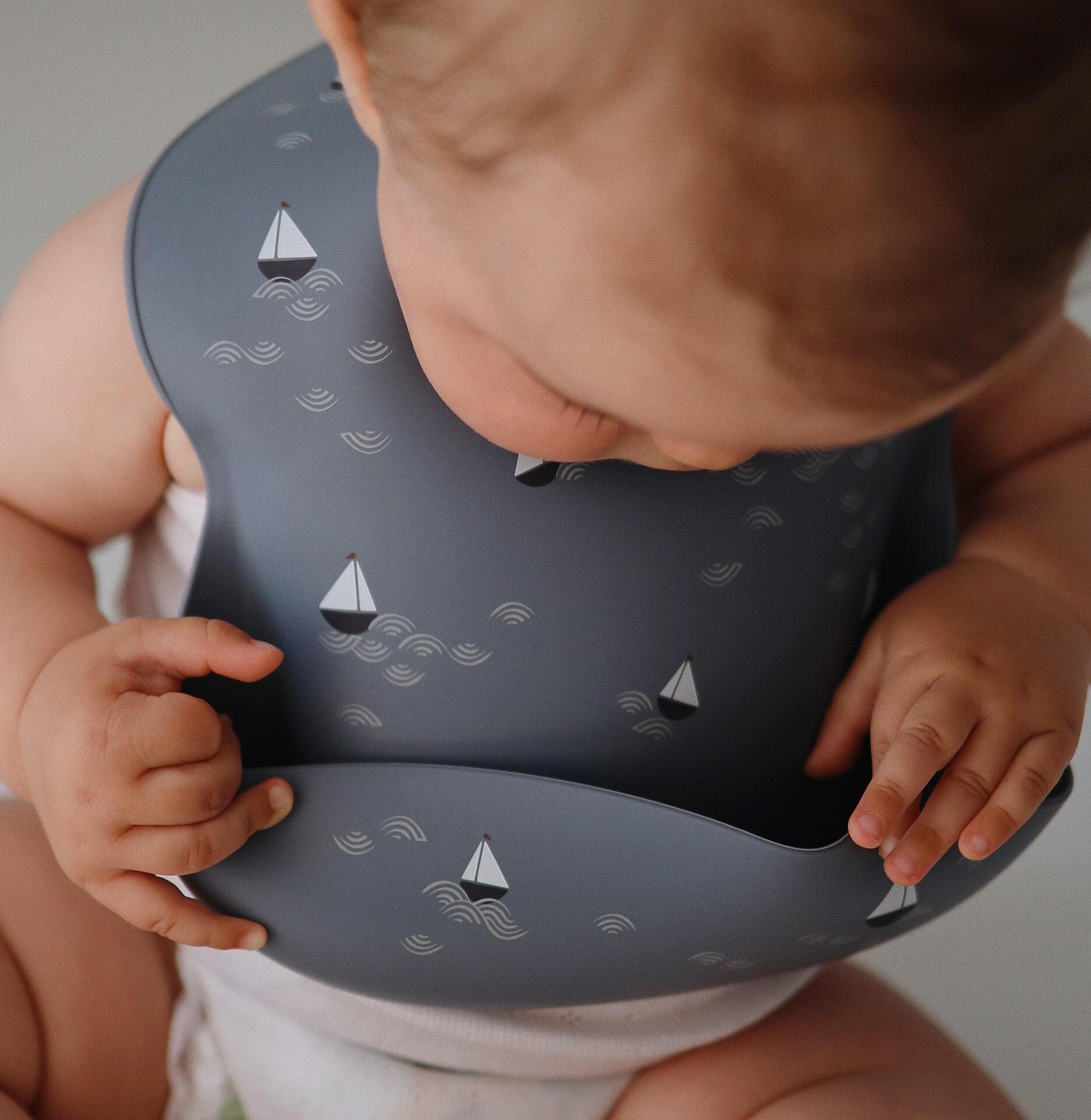 Със забавната колекция силиконови лигавници с джоб на Mushie вашето мъниче ще се чувства винаги удобно и чисто по време на хранене. Проектирани в Швеция, бебешките лигавници Mushie се отличават с класически модели, които са едновременно елегантни и стилни. Характеристики: Изработен от хранителен силикон 100% без BPA и фталати Размер на лигавника - 28 x 24.1 x 4.2 см. Лигавниците разполагат със заоблени, вградени закопчалки за около врата на детето за плътно и удобно прилягане Дълбокият преден джоб е идеален за улавяне на храна, като същевременно поддържа бебето и мястото за хранене чисти Грижа за продукта: Лесен за почистване, силиконовият лигавник издържа на петна и не абсорбира вода. Измийте със сапун и оставете да изсъхне на въздух.