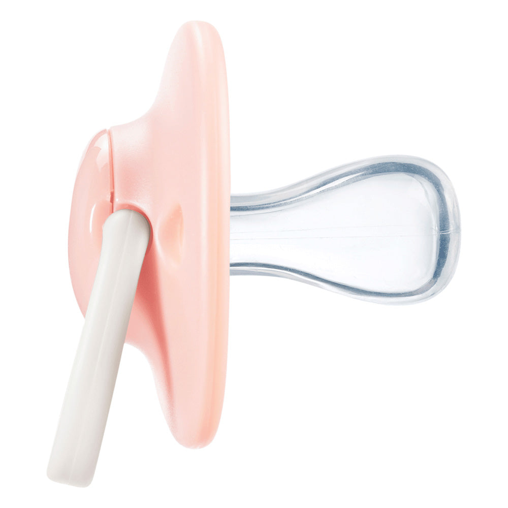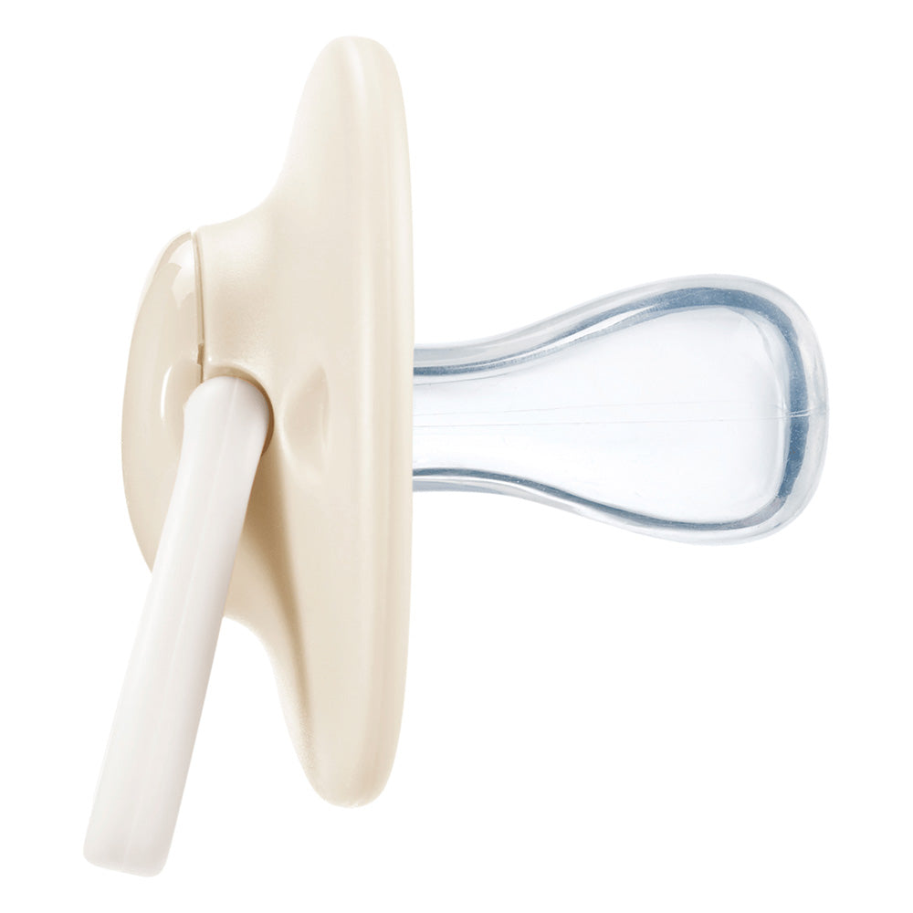 Симетрична ортодонтична форма, която позволява биберона да се обръща, така че да сте спокойни, че винаги е поставен в правилната посока;