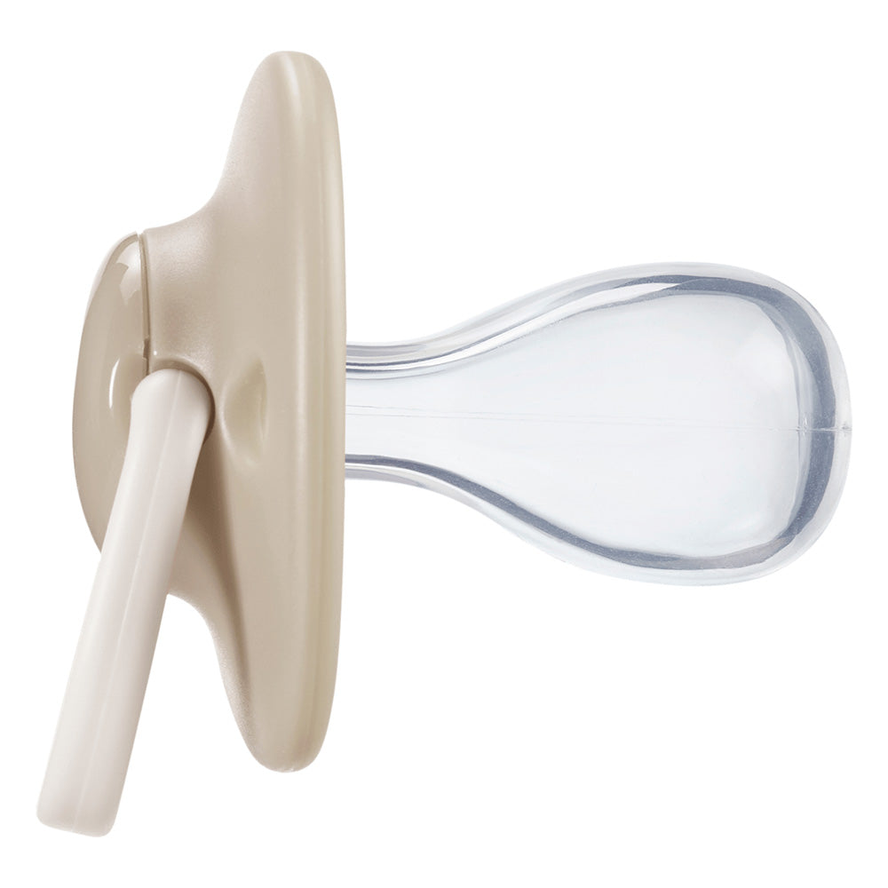 Симетрична ортодонтична форма, която позволява биберона да се обръща, така че да сте спокойни, че винаги е поставен в правилната посока;
