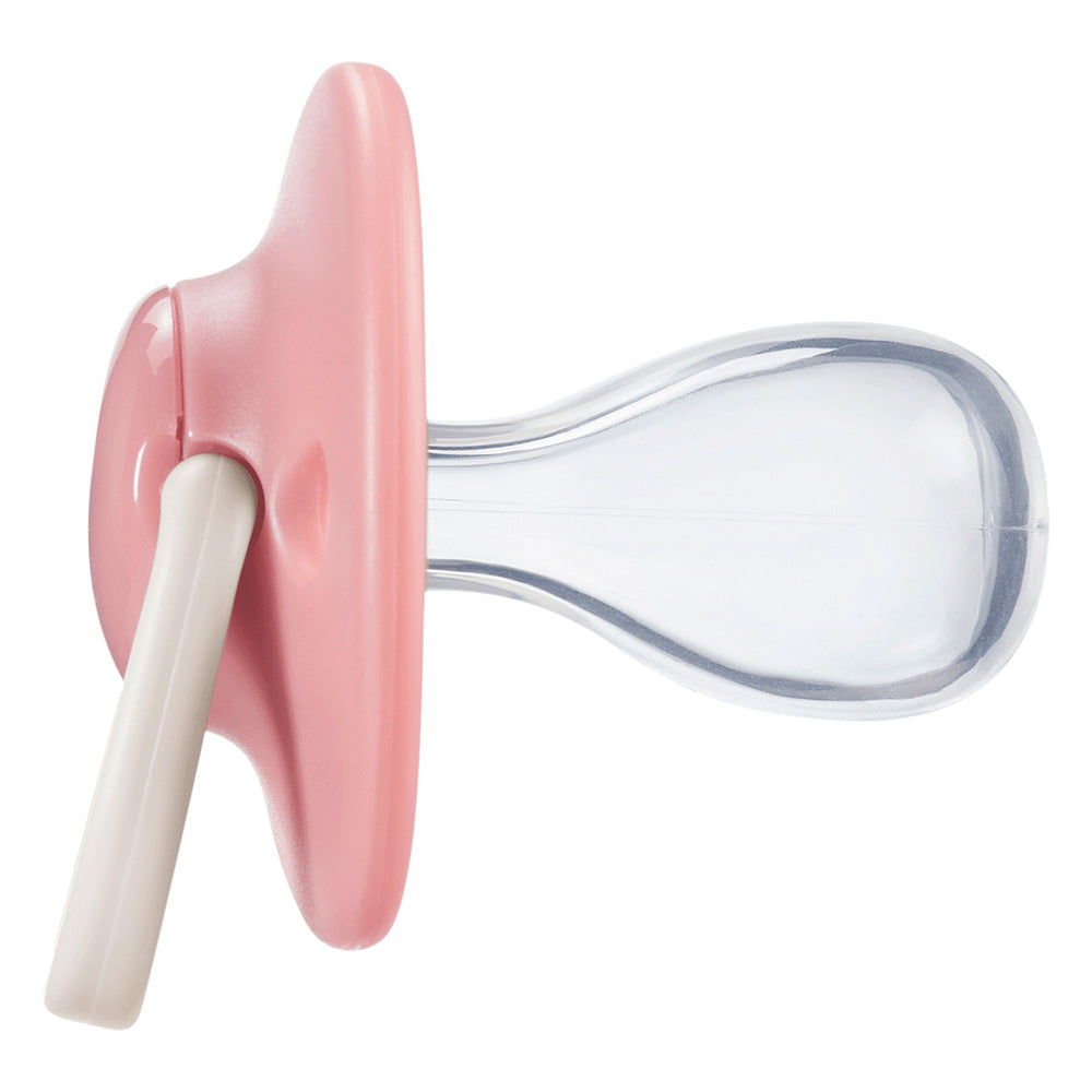 Симетрична ортодонтична форма, която позволява биберона да се обръща, така че да сте спокойни, че винаги е поставен в правилната посока;