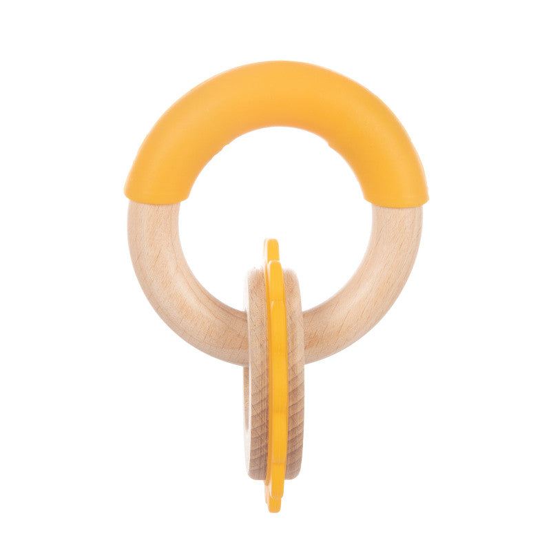 Чесалката от дърво и силикон е перфектната първа играчка за бебе, но и незаменим помощник в трудния период на никнене на зъбки при най-малките. Благодарение на различните си елементи с различна твърдост и текстура, тя ще бъде идеална при никнене на зъбите. Удобната форма и красиви цветове насърчават детето да играе. Подпомага развитието на нови умения като хващане, манипулиране на предмети или координация на зрително-двигателния апарат. Изработена е от безопасно, естествено буково дърво и силикон .Без BPA. Препоръчителна възраст 0м+. Да не се използва в миялна машина. Да не се стерилизира.