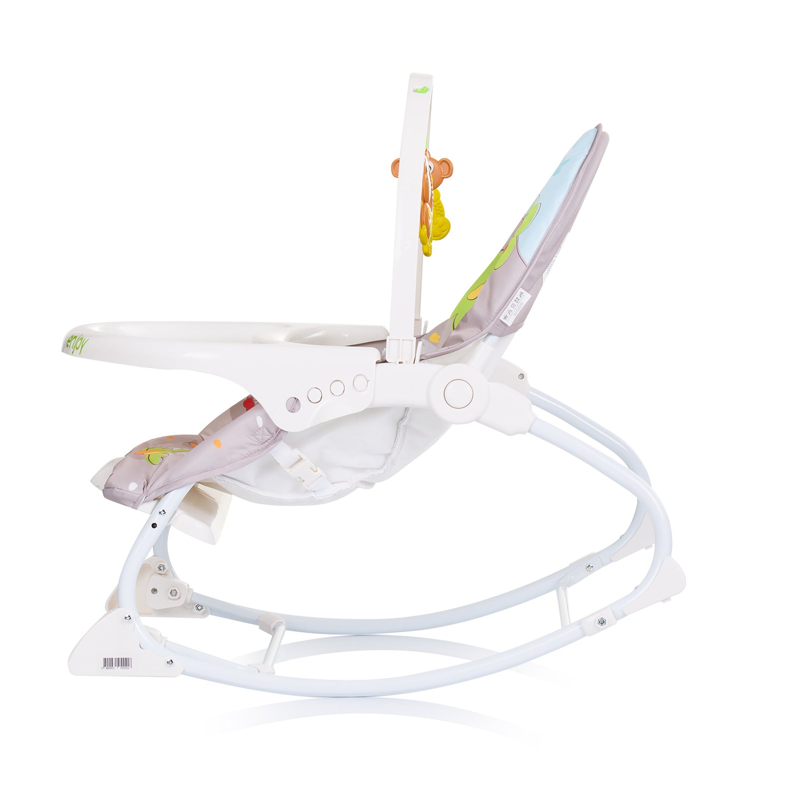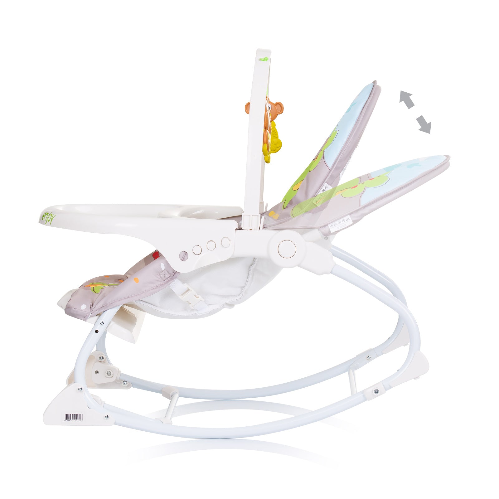Șezlongul muzical Enjoy este perfect atât pentru joacă, cât și pentru dormit. Bebelușul se distrează cu jucăriile și cutia muzicală. Apoi poate adormi datorită poziției culcat sau se poate relaxa cu vibrațiile. Pentru copiii mai mari care pot sta singuri, poate fi folosit ca scaun.
