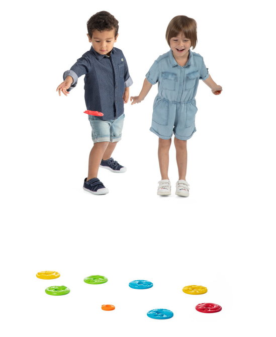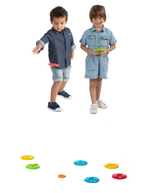 Discurile sunt concepute pentru a fi potrivite pentru copiii mici - au o formă ergonomică și sunt o jucărie excelentă pentru dezvoltarea abilităților motorii și a coordonării.