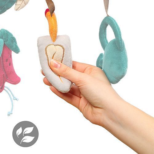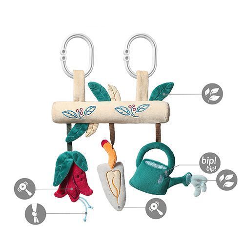 Jucăria educativă GARDEN GIRL introduce copilul dumneavoastră într-o lume diversă de culori, sunete și forme. Cu forma sa de panglică, jucăria poate fi atașată la toate tipurile de scaune auto sau cărucioare. Datorită acestui fapt, poate însoți copilul în timpul excursiilor și plimbărilor.