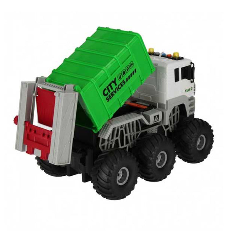 Дистанционното управление с 2.4G технология осигурява плавно и прецизно движение, а здравите гуми позволяват игра вкъщи и навън. Подвижният контейнер, който се повдига при натискане на бутон, допълва реалистичното преживяване и насърчава ролевата игра.